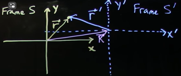 \[ \begin{aligned} \bar{r}=\bar{R}+{\bar{r}}^{'}\\ \bar{r}^{'}=\bar{r}-{\bar{R}}\\ \end{aligned} \]